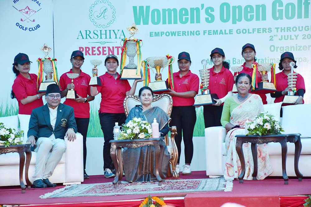 Distributing trophies and certificates to the winners of the tournament, President Bhandari said, "Our country carries a big potentiality for golf reasoning its geographical structure and a favourable environment. So this will help ease the development of sport tourism and attract international athletes through the promotion of sports."