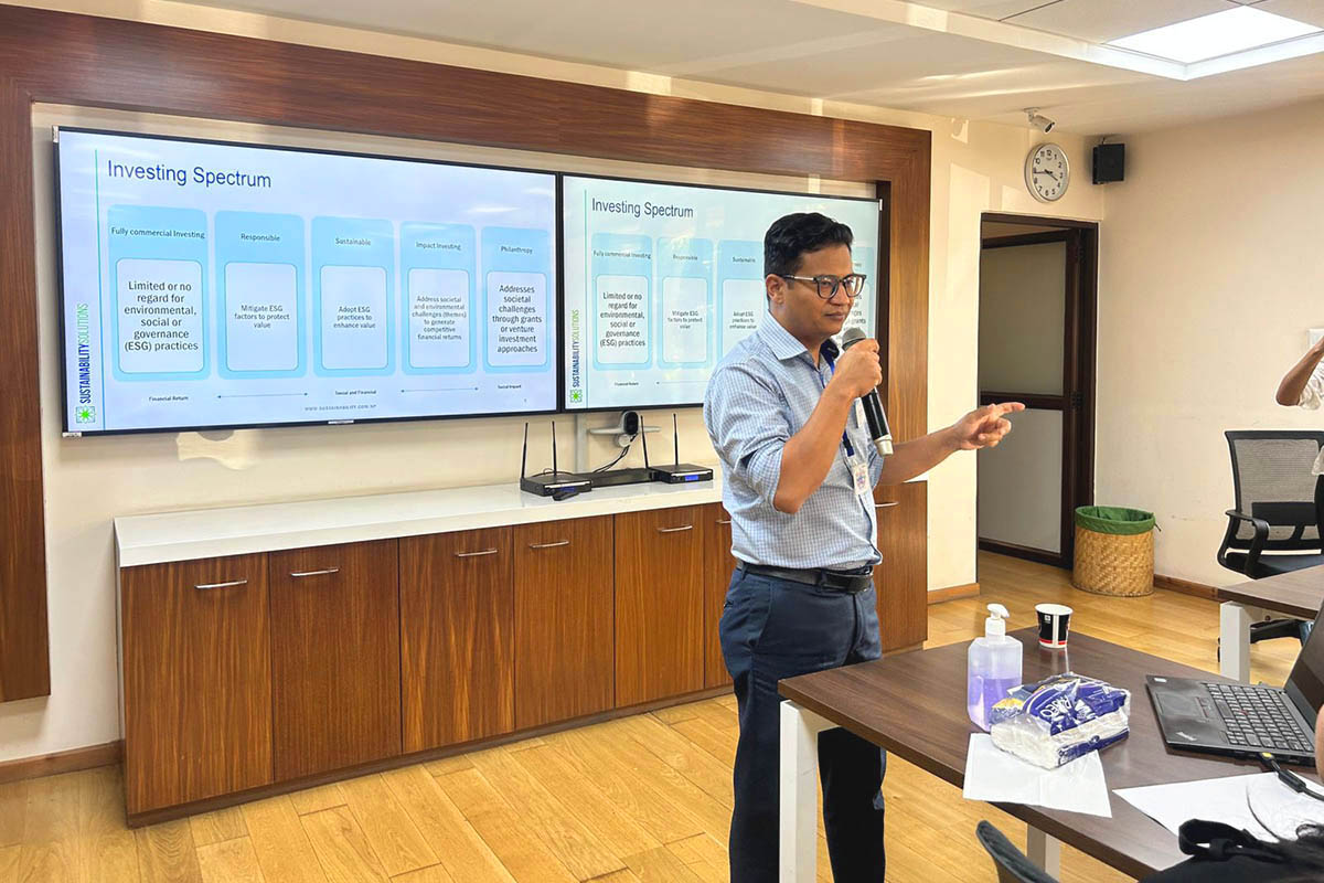Ineej Manandhar, Climate Finance Lead at UNDP, led a deep-dive session on the role of the private sector and alternative sources of finance in advancing sustainability. Sandeep Shrestha, Director and Founder of Sustainability Solutions, gave a contextual overview of sustainable finance in Nepal and explained how ESG-aligned investment decisions support long-term resilience and competitiveness.