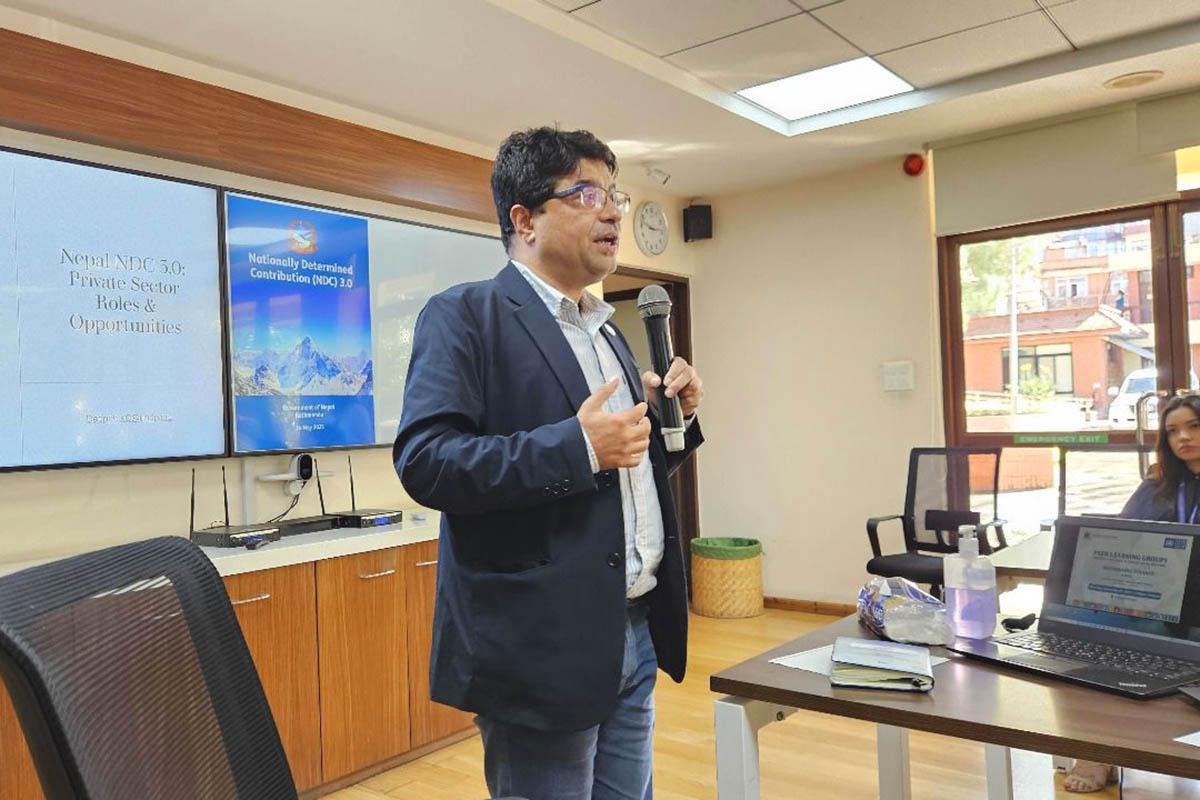 The event opened with remarks from Krishna Shah, Executive Director of GCN, who emphasised the urgency of collaboration to move sustainable finance from theory to action. A technical session led by Deepak KC, Programme Analyst at UNDP, introduced participants to Nationally Determined Contributions (NDCs) and underlined the role of the private sector in meeting climate targets.