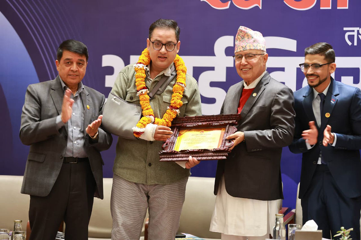 Chief guests at the ceremony, Finance Minister Rameshore Prasad Khanal and Minister for Industry, Commerce and Supplies Anil Kumar Sinha, honoured the award-winning journalists with certificates and cash.