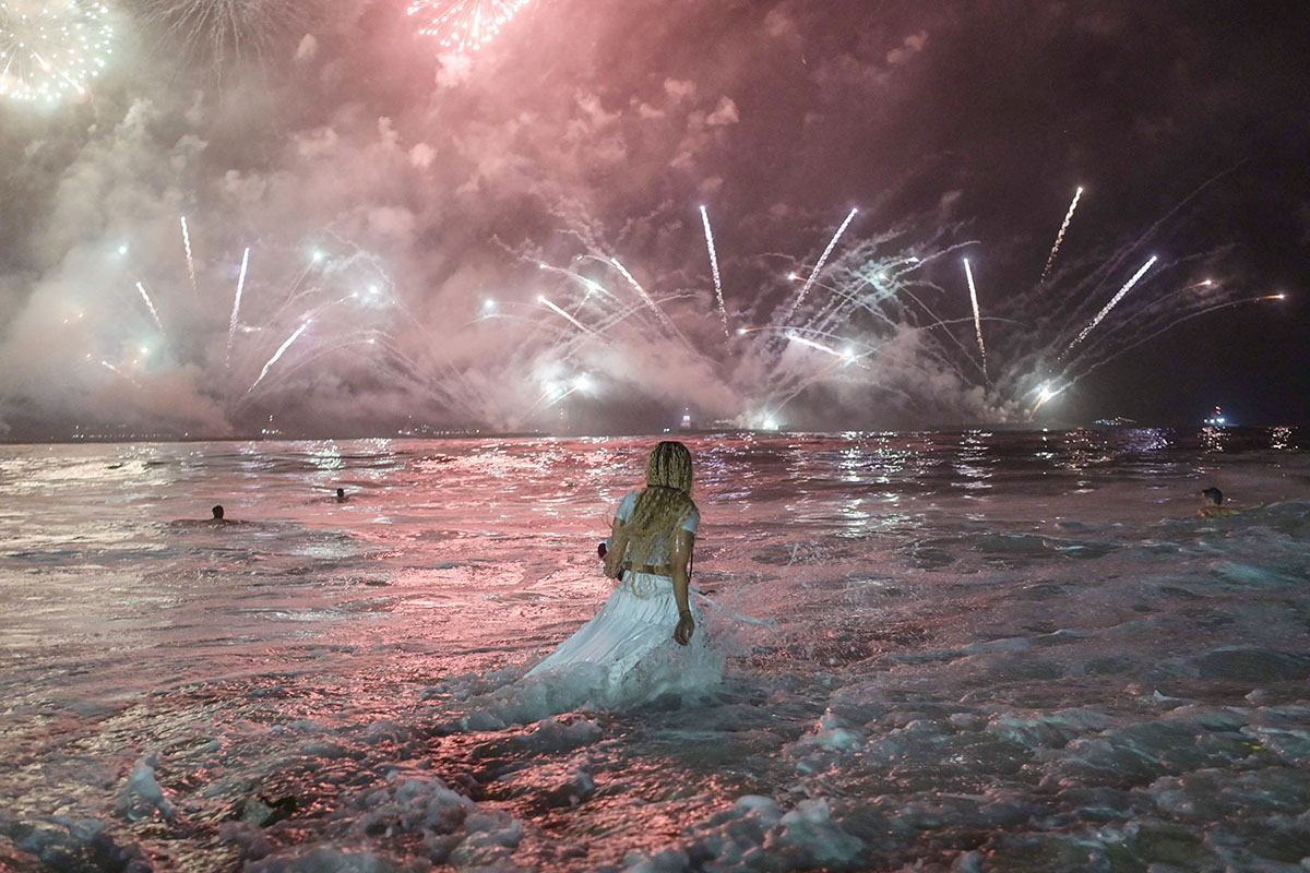 Crowds packed the city's expansive coastline for concerts and fireworks, mostly dressed in white, a tradition related to Iemanja, the goddess of the sea in Afro-Brazilian faiths.