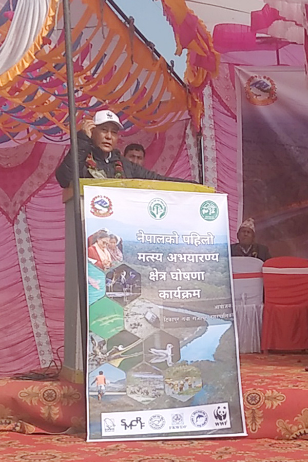 TIKAPUR: Tikapur Municipality in Kailali district and Rajapur Municipality in Bardiya district jointly declared Nepal’s first fish sanctuary, the Sakhi Fish Sanctuary, in the Lower Karnali River on Thursday. The sanctuary is an initiative for freshwater biodiversity conservation and sustainable fisheries management in Nepal.