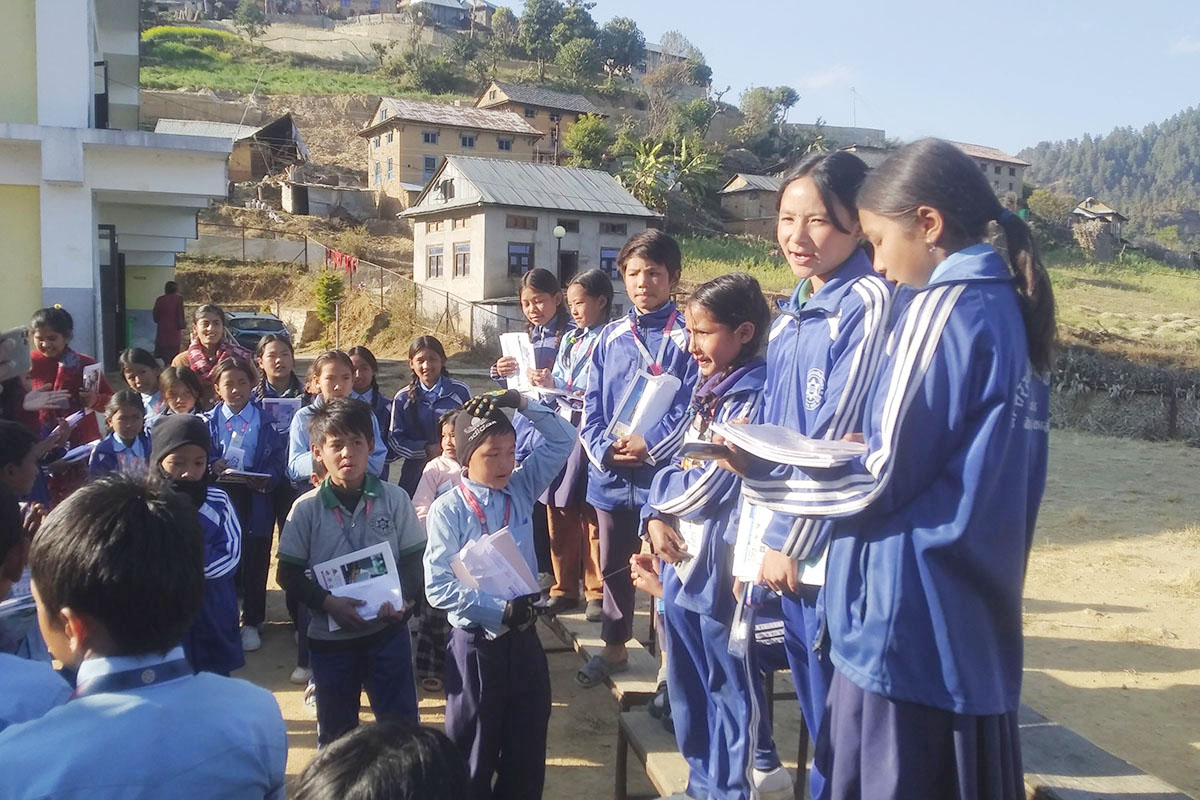 The programme also included interactive elements. Infinite Nepal team members organised a quiz competition for primary-level students, encouraged children to dance to popular songs, and distributed stationery items and warm trousers as gifts.