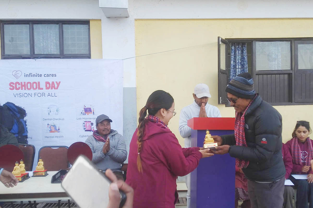 On behalf of Infinite Nepal, Bisakha Pradhan thanked the school management for their cooperation. The company honoured participating teachers and representatives from partner organisations with letters of appreciation and tokens of love. In reciprocation, the school management draped traditional stoles over the shoulders of doctors, health professionals, volunteers and a member of the media in attendance and handed over tokens of love to the representatives of the organisations.