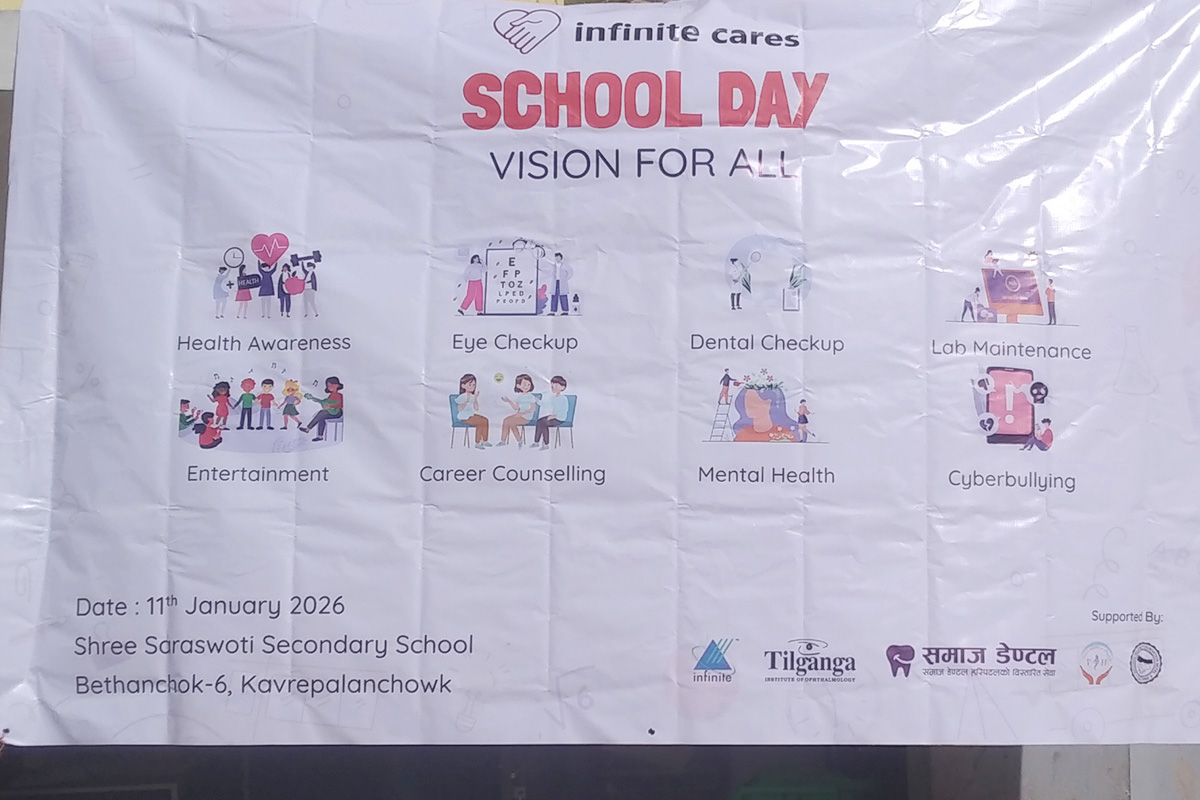 KAVRE: Infinite Nepal organised a comprehensive free health check-up and awareness camp at Shree Saraswati Secondary School in Bhugdeu Mahankal, Bethanchok Rural Municipality-6, Kavrepalanchok District, on Sunday as part of its corporate social responsibility (CSR) initiative, Vision for all.