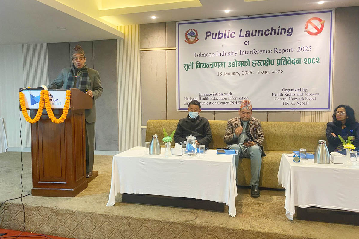 The findings are published in the Tobacco Industry Interference Report‑2025, which was publicly launched in Kathmandu on Sunday at an event organised by HRTC, Nepal, in association with the National Health Education, Information and Communication Centre (NHEICC).