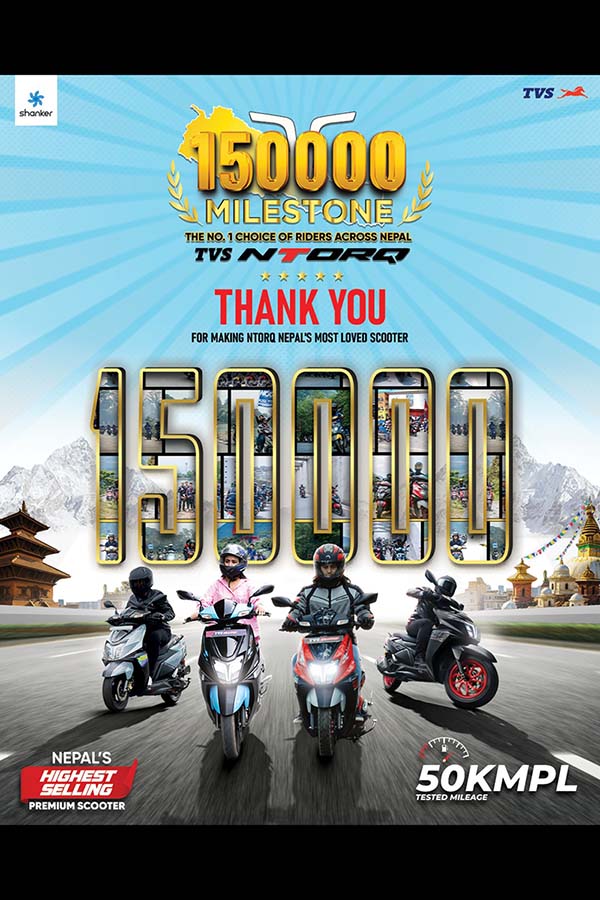 Reaching 150,000 owners, the distributor added, further cements NTORQ’s leadership in Nepal’s sporty scooter category and strengthens nationwide brand recall and visibility.