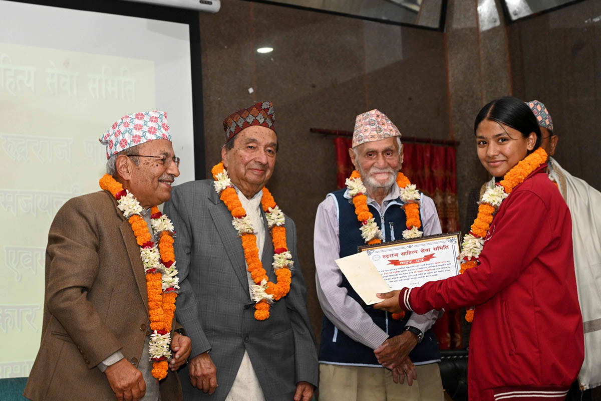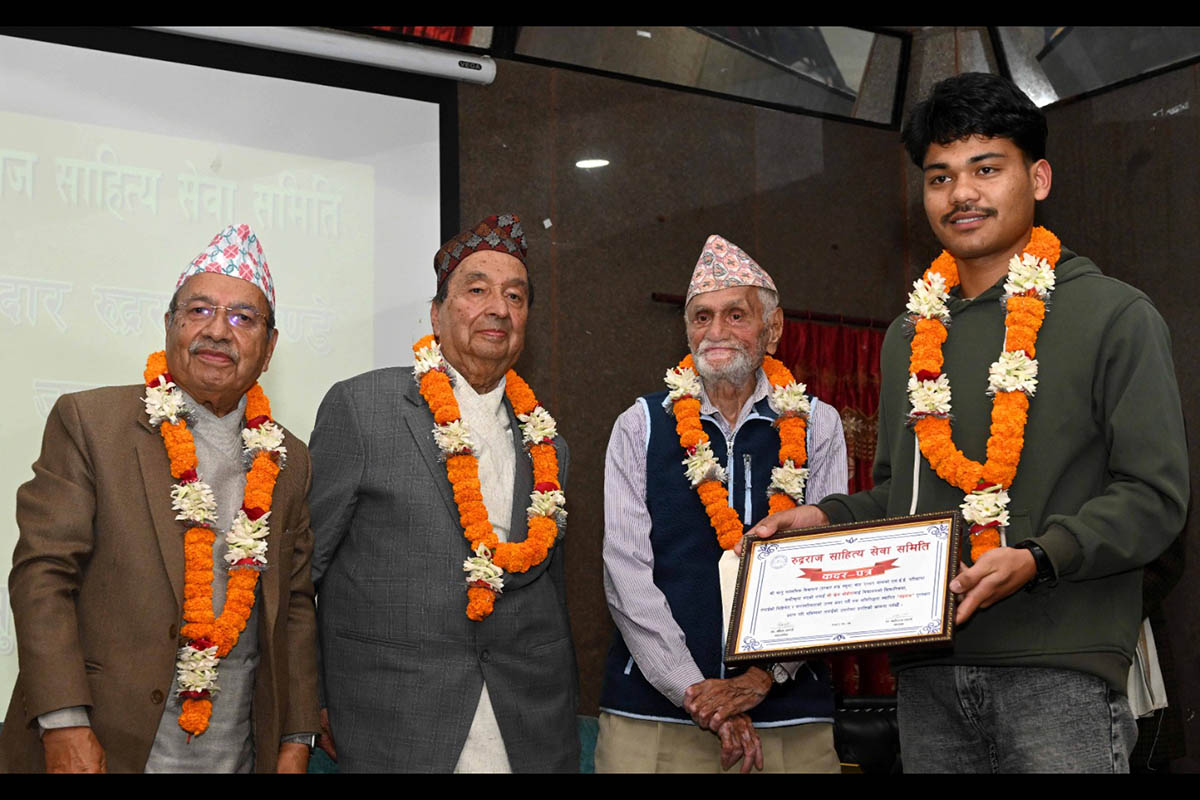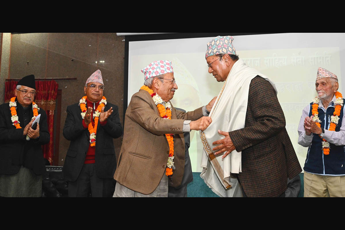 On the occasion, noted historian Prof Dr Tek Bahadur Shrestha was honoured with an award in recognition of his significant contributions to historical research and scholarship in Nepal. The award was presented by the Chief Guest, Prof Upadhyay, while the ceremonial shawl was offered by the President of the Samiti, Dr Badri Raj Pande. In his remarks, Prof Dr Shrestha expressed gratitude for the recognition and emphasised the importance of continuing research and documentation of Nepal’s historical and intellectual heritage.