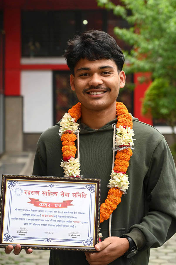 The event also recognised young academic talent. Two students from Bhanu Secondary School (Durbar High School) were honoured for their academic excellence: Khem Bohora, who secured outstanding results in the SEE examination last year, and Angel Pyakurel, recognised as a promising student.