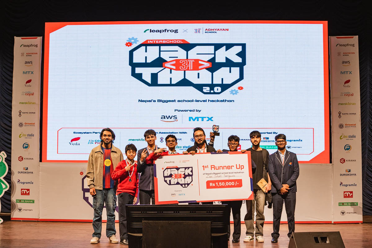 Organised by Adhyayan School in collaboration with Leapfrog Technology and powered by AWS and MTX APAC, and held in partnership with Code for Nepal and Veda, the multi‑phase event saw 53 teams from both private and government schools compete. Participants spent weeks in orientation sessions, bootcamps and mentorship programmes before the top teams advanced to the final showcase.
