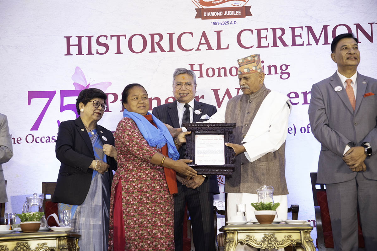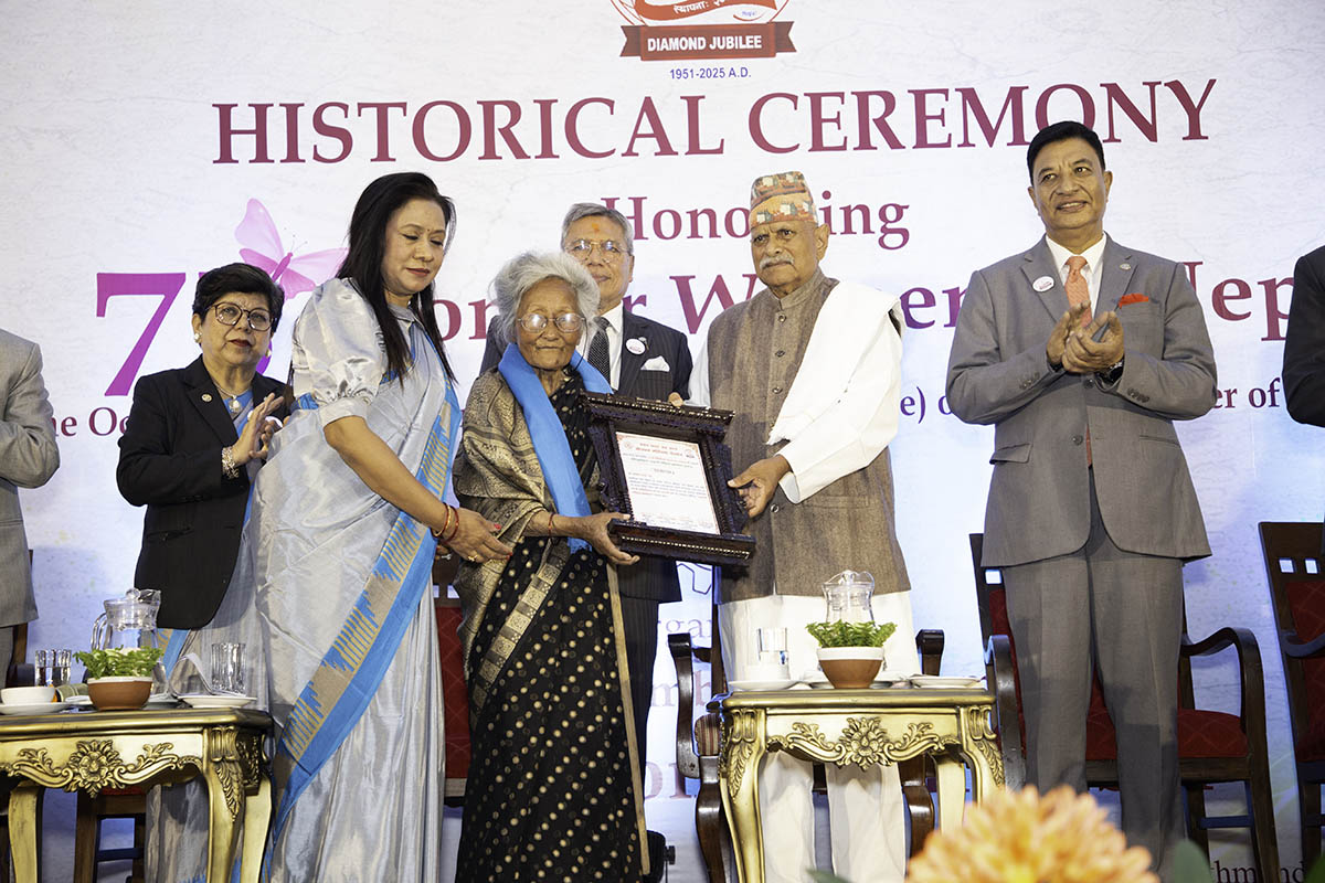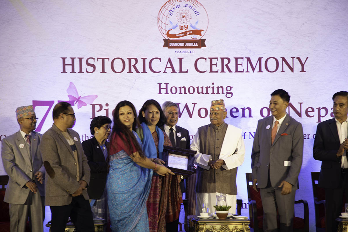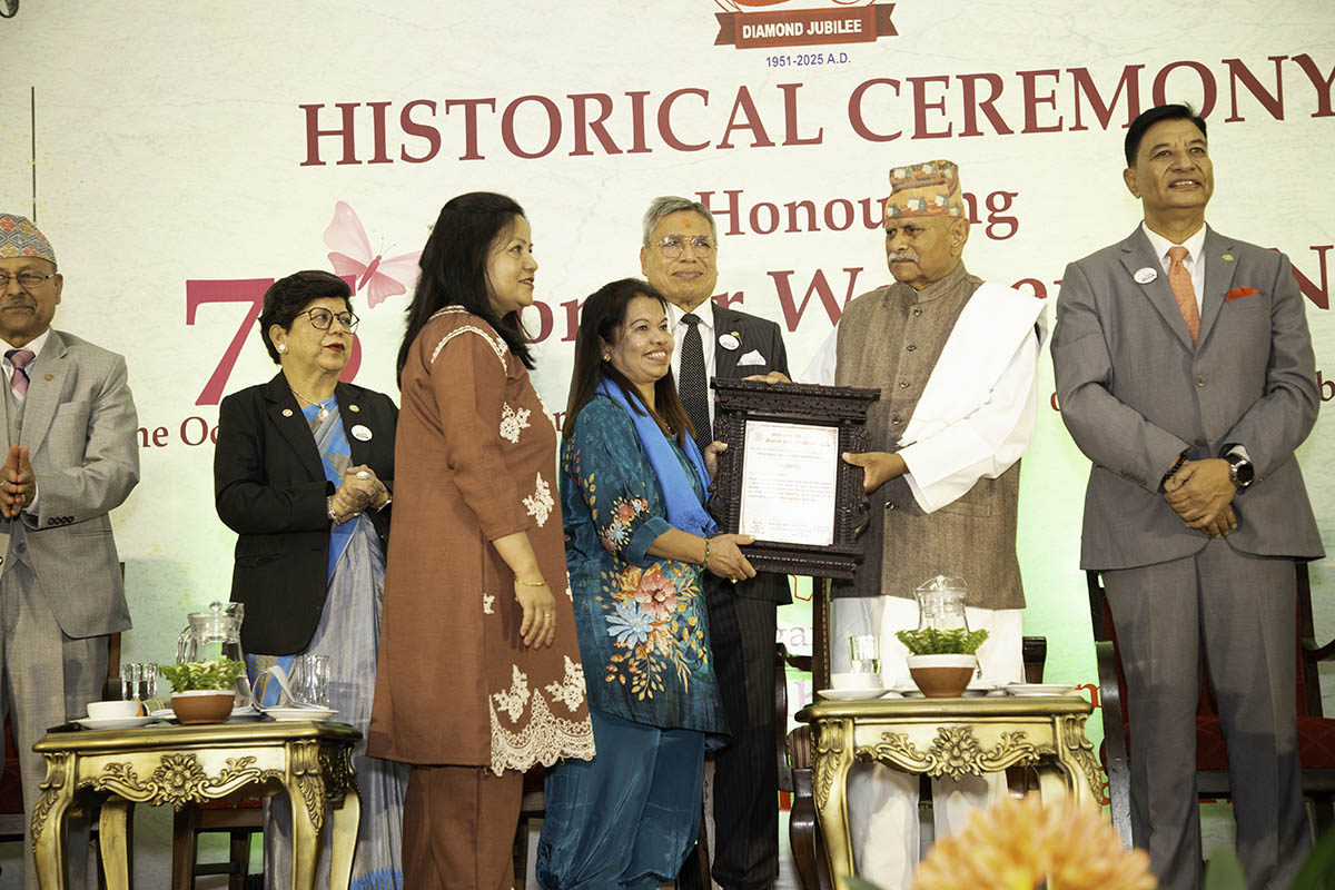 At the event, 75 women were recognised for their lifelong contributions to women’s empowerment and social development. Former president Dr Ram Baran Yadav presented certificates of honour to the recipients.