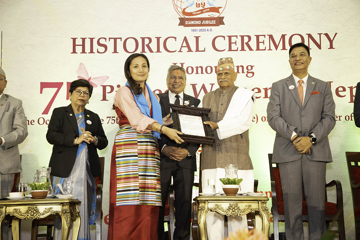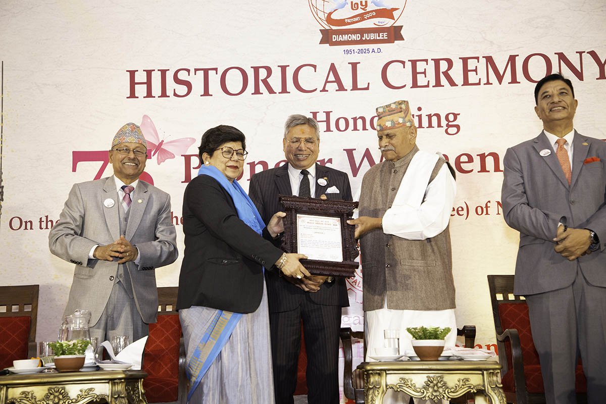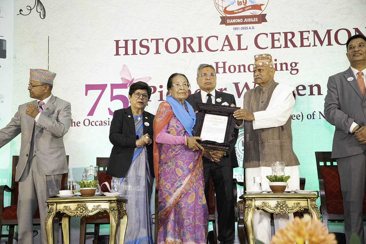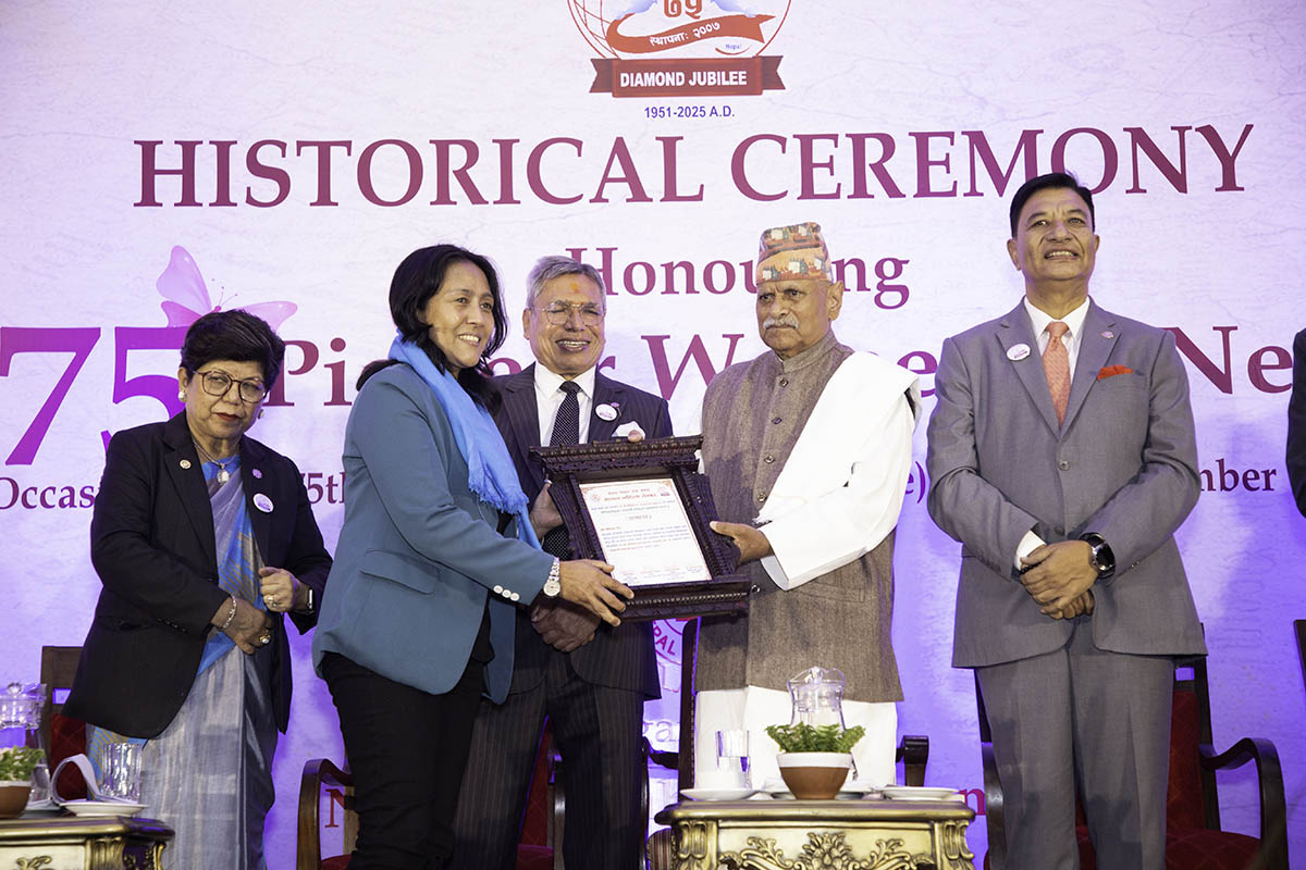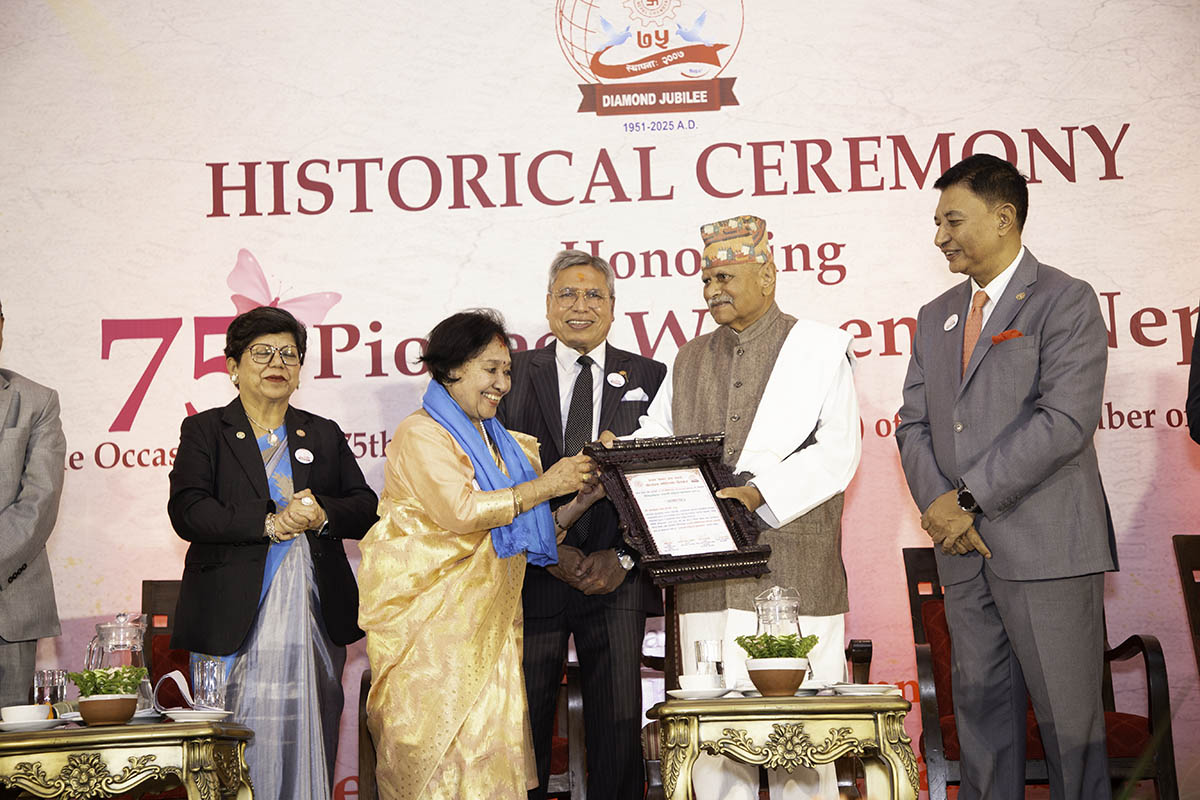 At the event, 75 women were recognised for their lifelong contributions to women’s empowerment and social development. Former president Dr Ram Baran Yadav presented certificates of honour to the recipients.