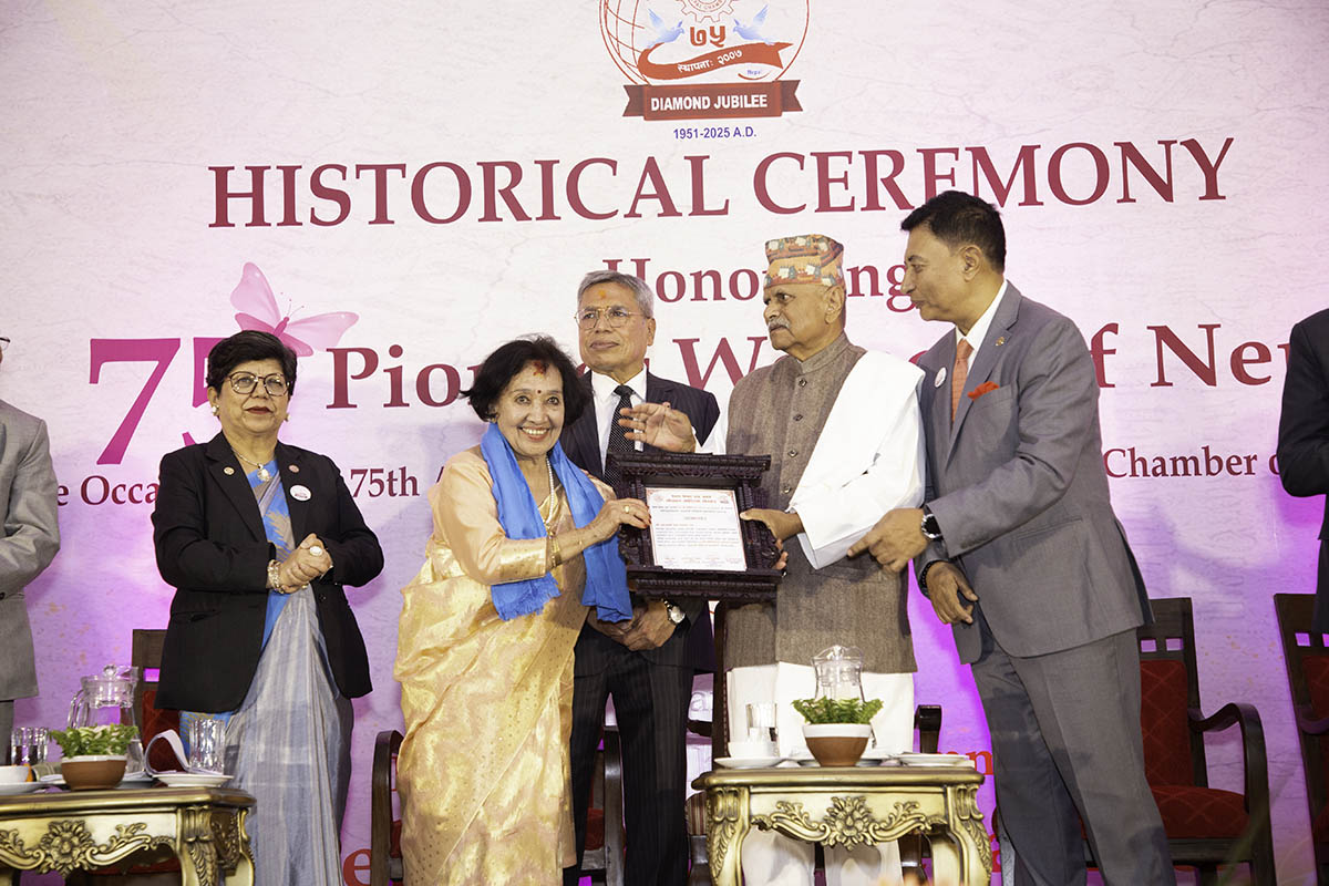 KATHMANDU: Nepal Women Chamber organised a programme titled 'Honouring Pioneer Women of Nepal' in Kathmandu on Thursday to mark the 75th anniversary of Nepal Chamber of Commerce (NCC).
