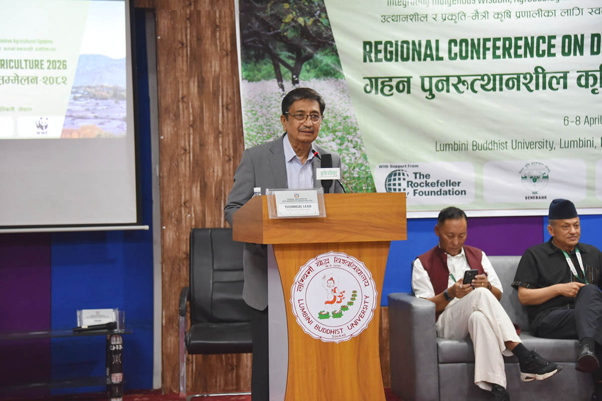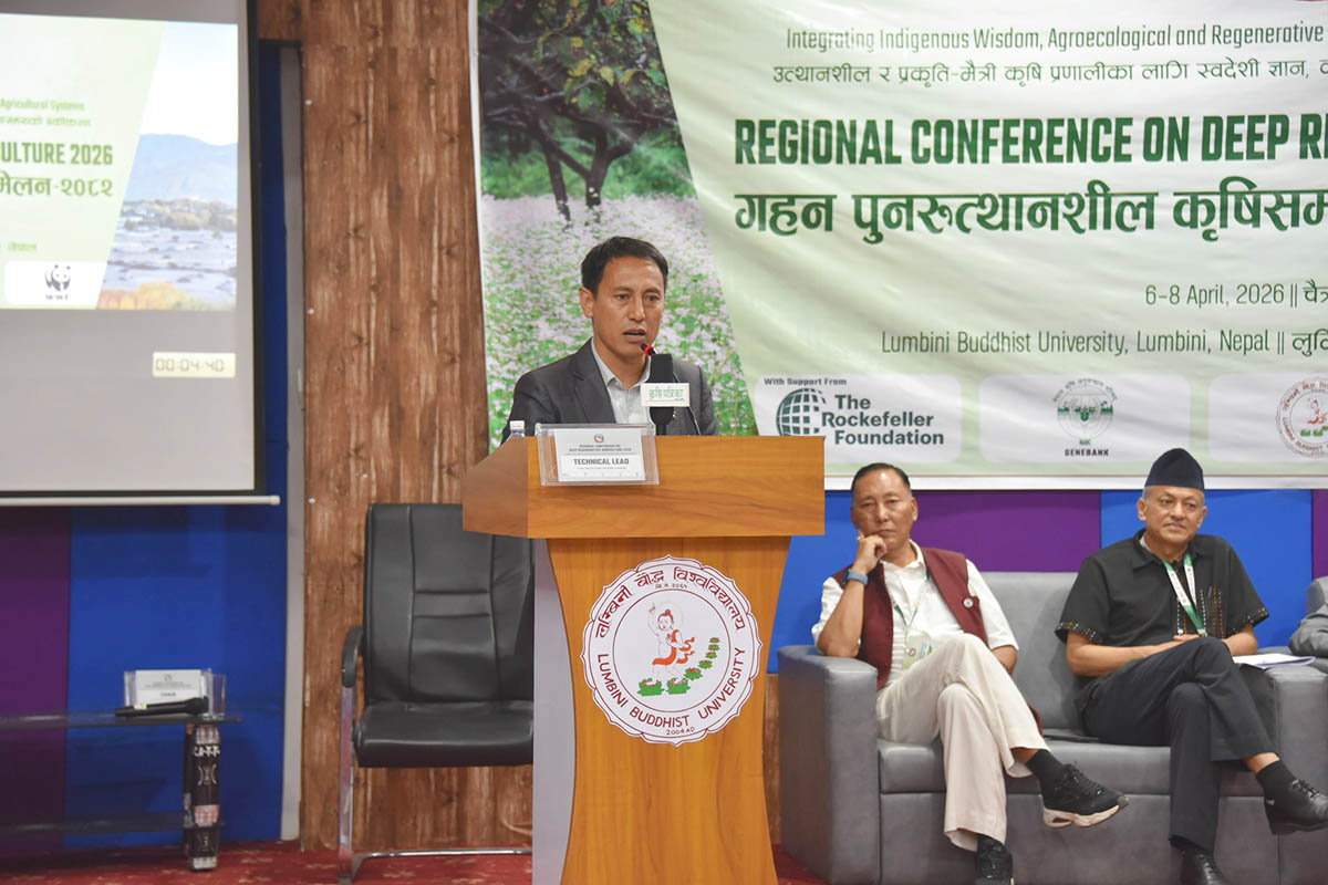 Jointly organised by Lumbini Buddhist University, Nepal Genebank, WWN and WWF with financial support from The Rockefeller Foundation, the conference provided a platform for farmers, researchers, policymakers, academics, development partners and private sector representatives to share knowledge on indigenous wisdom, agroecology and regenerative practices.