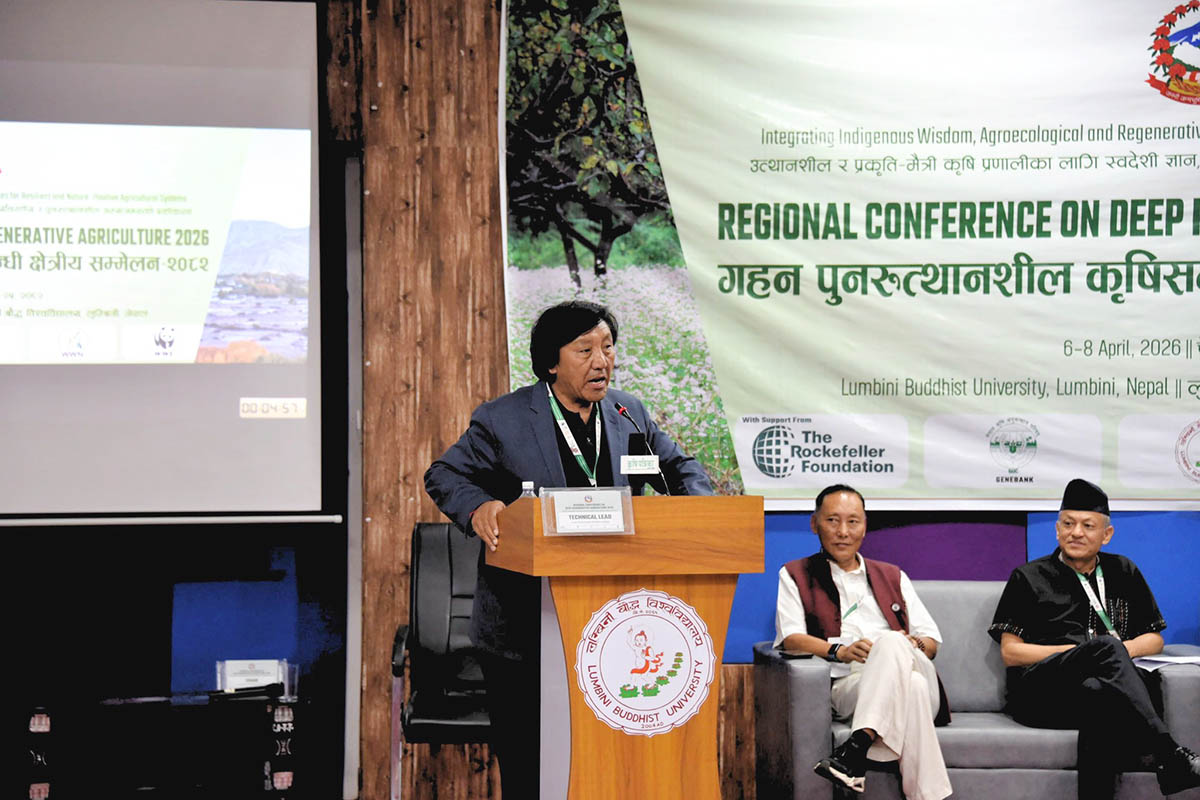The Regional Conference on Deep Regenerative Agriculture (REGAGRI) was held at Lumbini Buddhist University from April 6 to 8 and brought together more than 100 participants from Nepal, India, Bhutan and Myanmar.