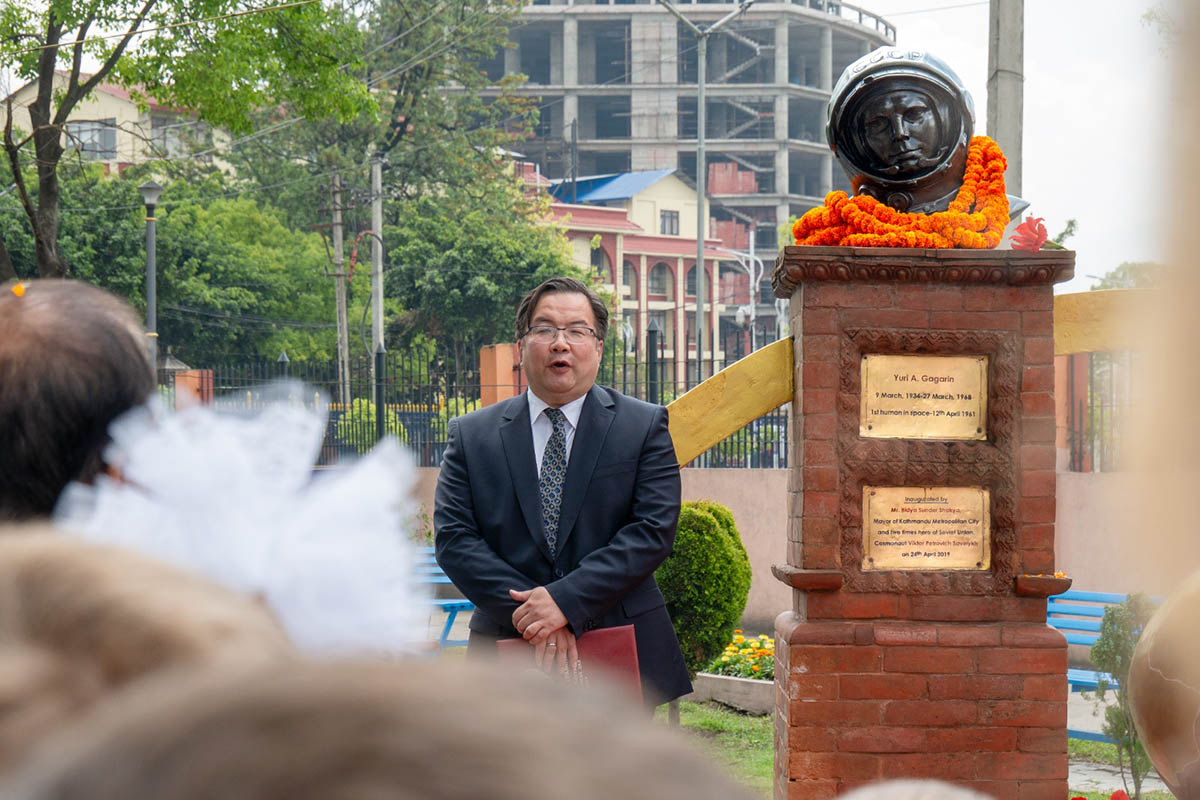 The final day began with a tribute ceremony at the statue of Yuri Gagarin in Ratnapark. Representatives from Nepal Russia Science and Technology Society, The Squad of ChangeMakers, the Russian House and the Embassy of the Russian Federation in Nepal attended. Rinchen Rakshaev, Minister Counsellor and Chargé d'Affaires, joined students, staff and invited guests for floral offerings, student speeches and addresses that highlighted the significance of International Cosmonautics Day and the inspirational value of space exploration.