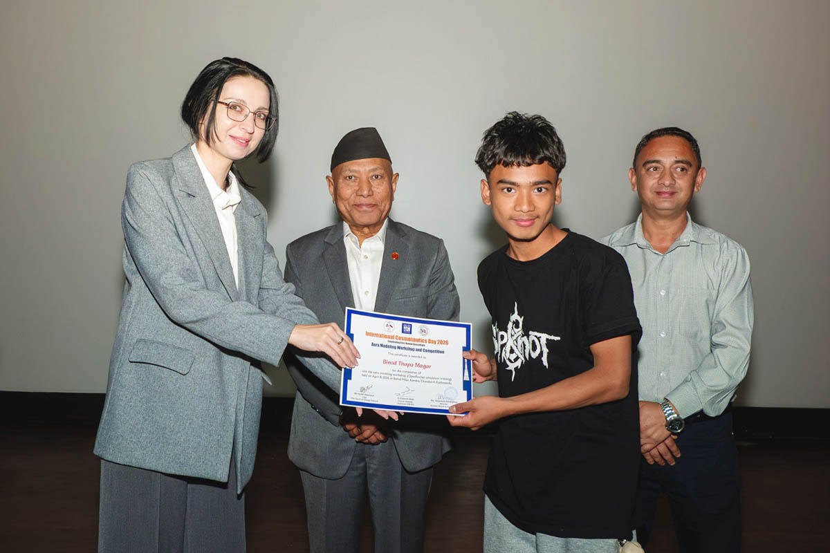 Following the tribute, the main programme at the Russian House in Kathmandu drew about 100 students and teachers. Presentations on the vastness of the universe and the future of space travel introduced participants to the scope and potential of space science. Interactive quizzes and sports sessions encouraged active student participation, and awards and certificates were presented to top performers from an aerospace and rocketry workshop held the previous day.